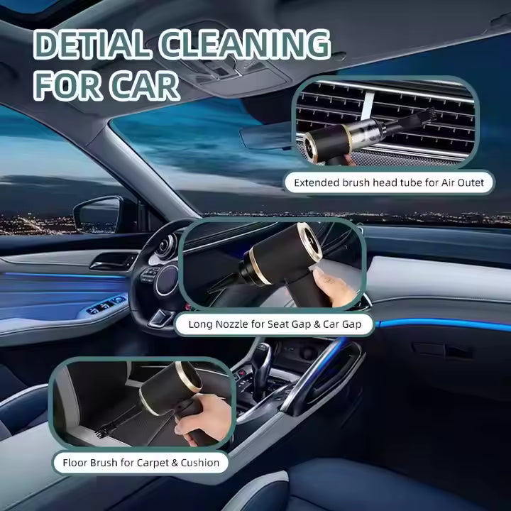 Keep your car and home clean with this powerful yet compact Mini Handheld Vacuum Cleaner, featuring both suction and blowing functions for versatile use. Equipped with a 1200 mAh rechargeable battery and LED light, it delivers up to 60 minutes of runtime, perfect for tight spaces. Sleek, lightweight, and cordless, it makes detailed cleaning easy and efficient.